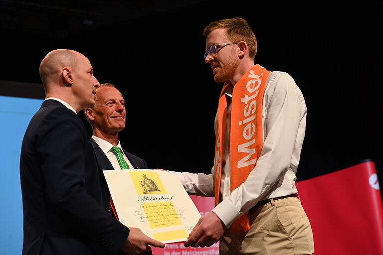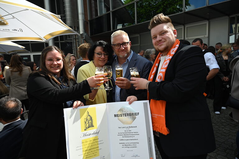 In feierlicher Atmosphäre erhielten 28 Meisterinnen und 235 Meister aus zwölf Gewerken ihre Meisterbriefe. Die Prüfungen hatten sie zwischen dem 1. März 2025 und dem 31. März 2026 abgelegt. Der jüngste Meister ist gerade erst 20 Jahre alt und kommt aus Düren, der älteste ist 52 Jahre und lebt in Eschweiler. Da viele Handwerkerinnen und Handwerker die Meisterausbildung direkt im Anschluss an ihre Gesellenausbildung beginnen, sind zwei Drittel von ihnen jünger als 30 Jahre.