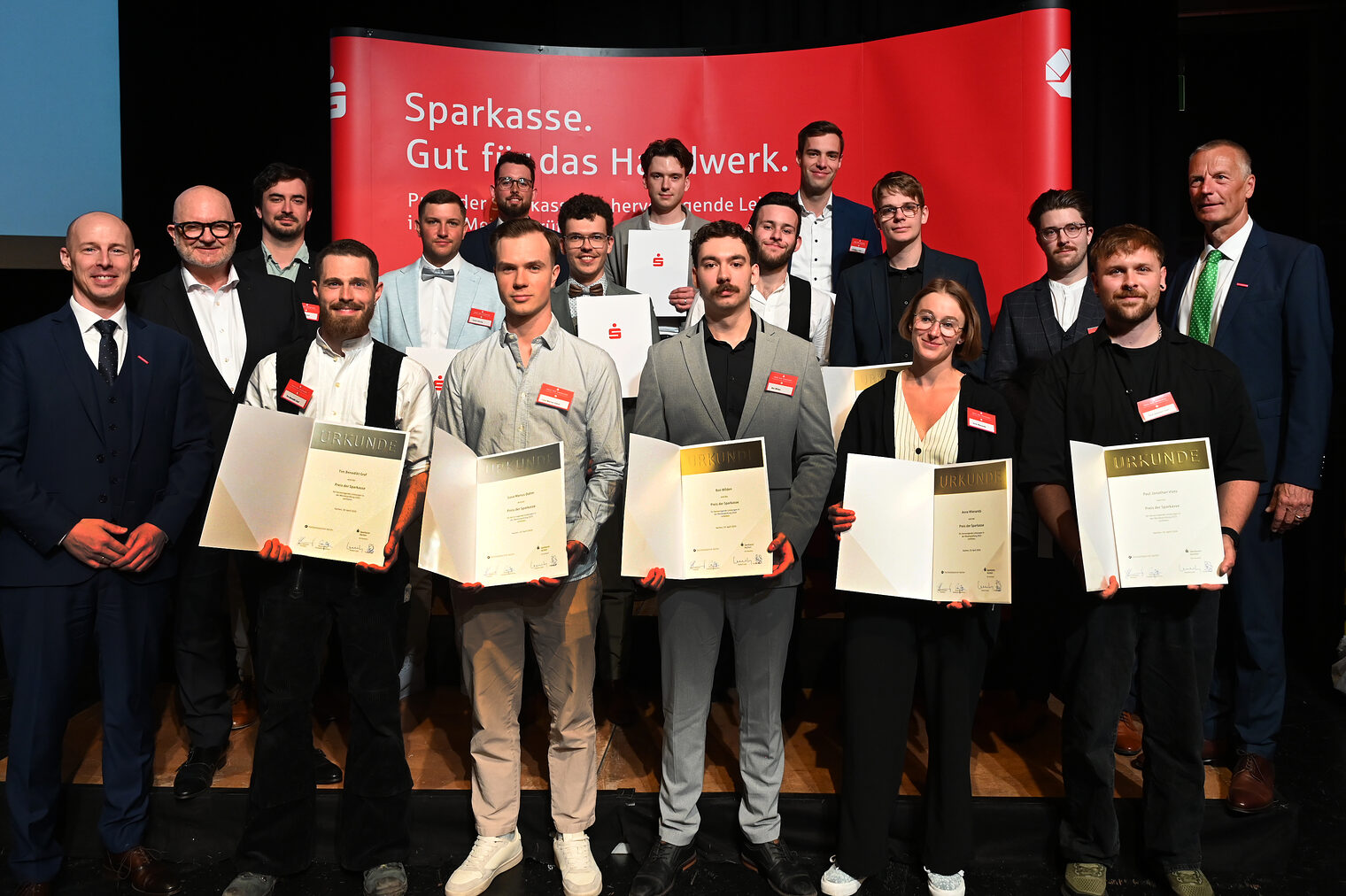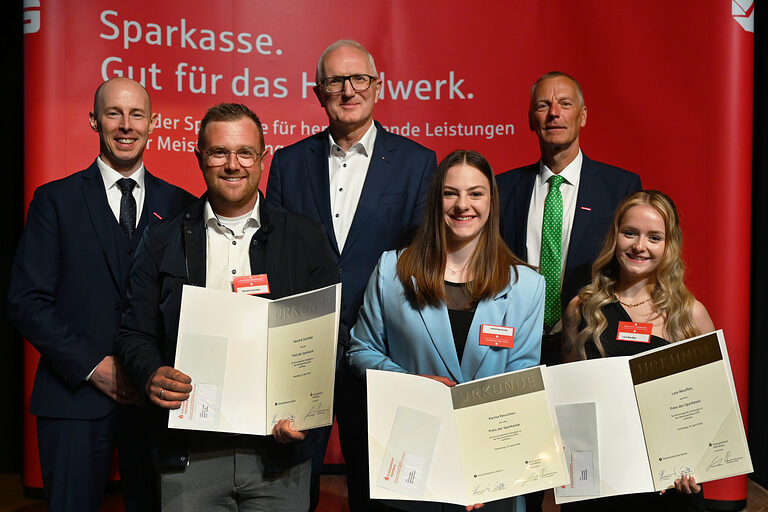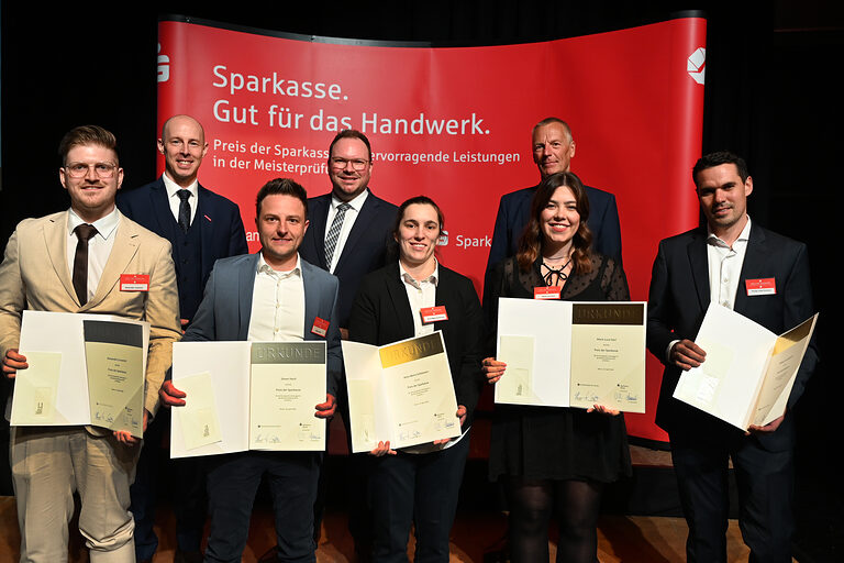 Für ihre herausragenden Leistungen in den Abschlussprüfungen wurden insgesamt fünf Meisterinnen und 19 Meister mit dem Preis der Sparkasse ausgezeichnet. „Das ist erneut eine sehr hohe Zahl und unterstreicht die Ausbildungsqualität sowie den Leistungswillen des aktuellen Meisterjahrgangs“, so Herwartz.